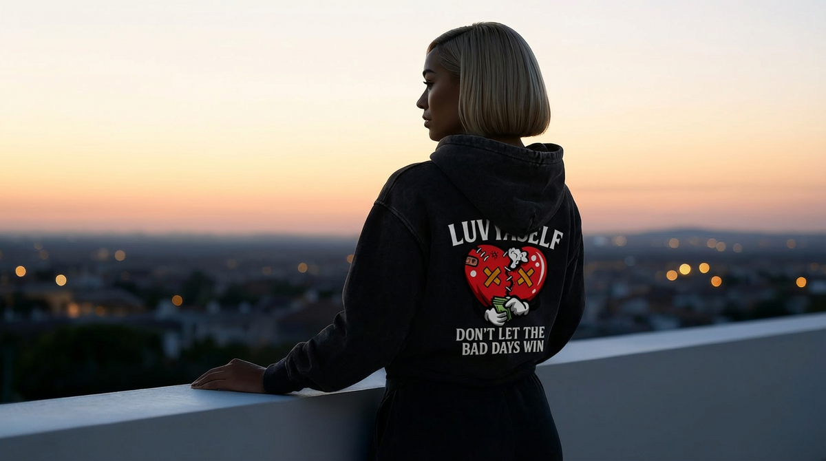 "LUVYASELF exists to remind you of your worth in a world that tries to make you forget. We design comfort-first essentials that serve as a safe space—armor for the soul that grounds you, inspires you, and reminds you that you are enough. We believe self-love is a heavyweight commitment, so we build heavyweight gear to match. Whether you are moving or standing still, we are here to remind you that you are never walking alone."